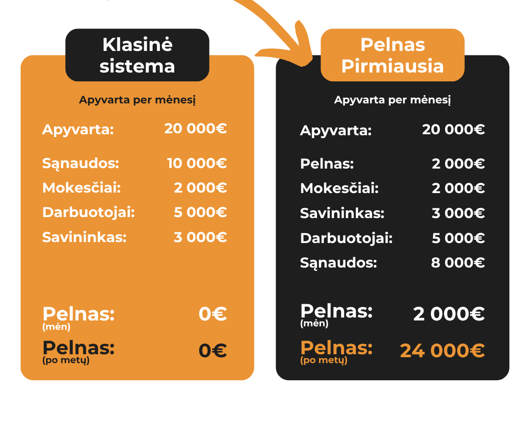 Kaip pasikeičia tavo verslo rezultatai taikant „Pelno pirmiausia“ metodą